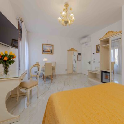 Ces chambres disposent d’un mobilier design raffiné dans un style vénitien classique. Les lits doubles sont grands ou twin. De vos chambres vous pourrez profiter d’une splendide vue typiquement vénitienne.